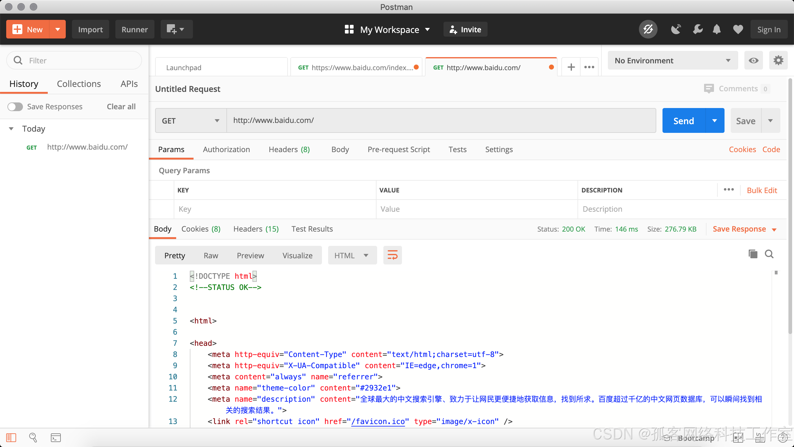 Postman:功能强大的网页调试与 RESTful 请求工具。Postman可以帮助我们模拟请求,非常方便的定制我们的请求以及查看服务器的响应。
